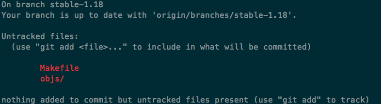 auto/configure这个脚本是检查一些环境变量,然后生成宏变量,如果跑这个脚本过程报错的话,在auto里面搜索对应的关键字,一般可以找到原因。比如有些系统没装pcre库,就可以下载pcre的源码,然后指定pcre源码路径,再重新configure一下就可以了。 跑完这个脚本,我们来看看生成了什么东西,先git status一下